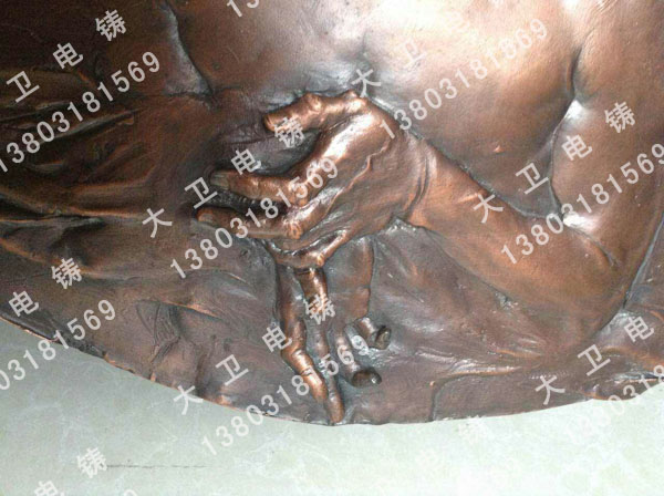 1.材質(zhì): 純紫銅鑄造在材質(zhì)上不會(huì)扯皮,表面效果良好。 2.鑄造工藝 電鑄工藝沒有砂眼、收縮、氧化皮、縮松等傳統(tǒng)工藝的鑄造缺陷。以及澆道、冒口在雕塑肌理上的橫行霸道。 3.復(fù)制力 因沒有收縮,可一比一的復(fù)制雕塑作品達(dá)到鑄什么像什么的境界,傳統(tǒng)工藝是達(dá)不到的。 4.平面鑄造 鑄造平面作品更是強(qiáng)項(xiàng),面積最大2m*8m可以整體鑄造。厚度可以均勻掌握到(1mm-8mm)。 聯(lián)系我們